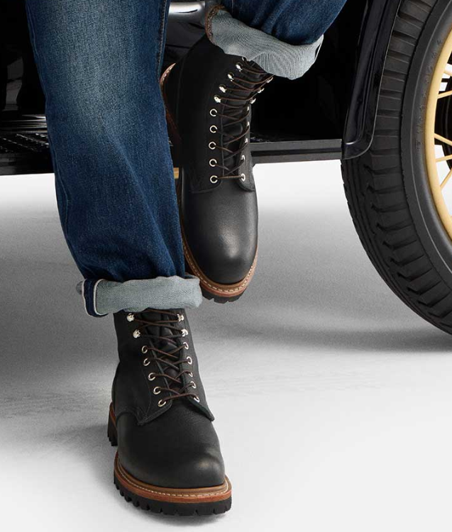 A rugged boot that can handle any adventure: Our 4501 Logger. Equipped with a heavy duty Vibram Lug Sole, a classic Storm Welt for maximum water protection and an 8-inch shaft, this shoe is a perfect companion during the colder months or any outdoor activity. The 4501 is the ideal partner, whether you're exploring the forest or the concrete jungle. The Black Oil Slick leather fits every outfit and comes with a visible texture. Tanned in our very own S.B. Foot Tannery that operates since 1872. Red Wings are largely handcrafted, emphasizing the focus on detail.
