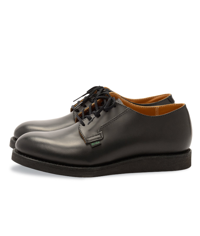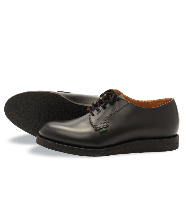 In the 1950s, postmen carried out their duties on foot. As public servants, they were in desperate need of stylish footwear that was worthy of their status and comfortable enough to see them through eight hours on their feet. Red Wing style 101 was designed to meet these special requirements. The black Postman Oxford features classic, easy-polish Black Chaparral leather and a cushioning Black Cushion Crepe Wedge sole. It's perfect companion for special events and daily life. We also offer a slip-on construction of the Postman: Romeo, with style no. 9198,